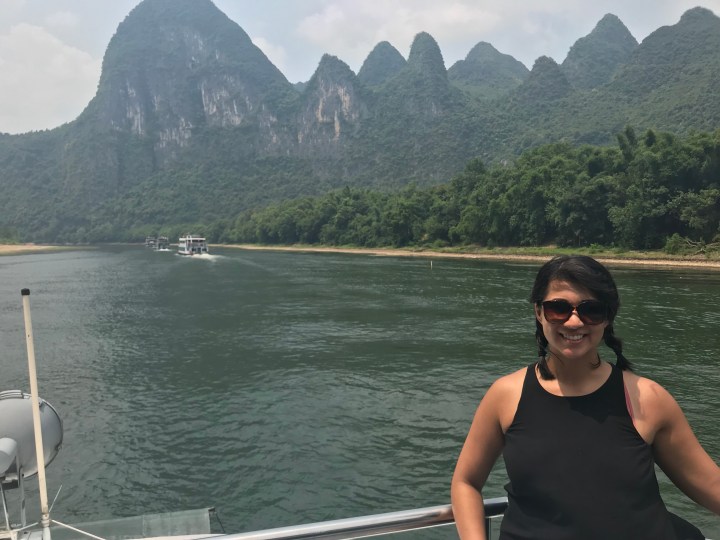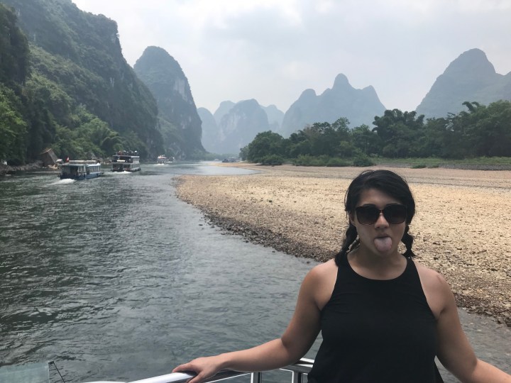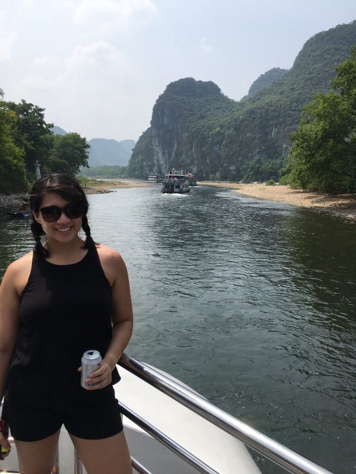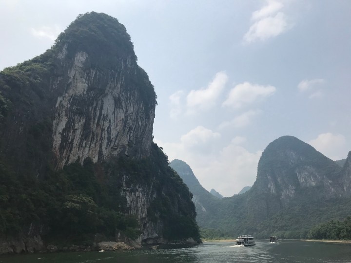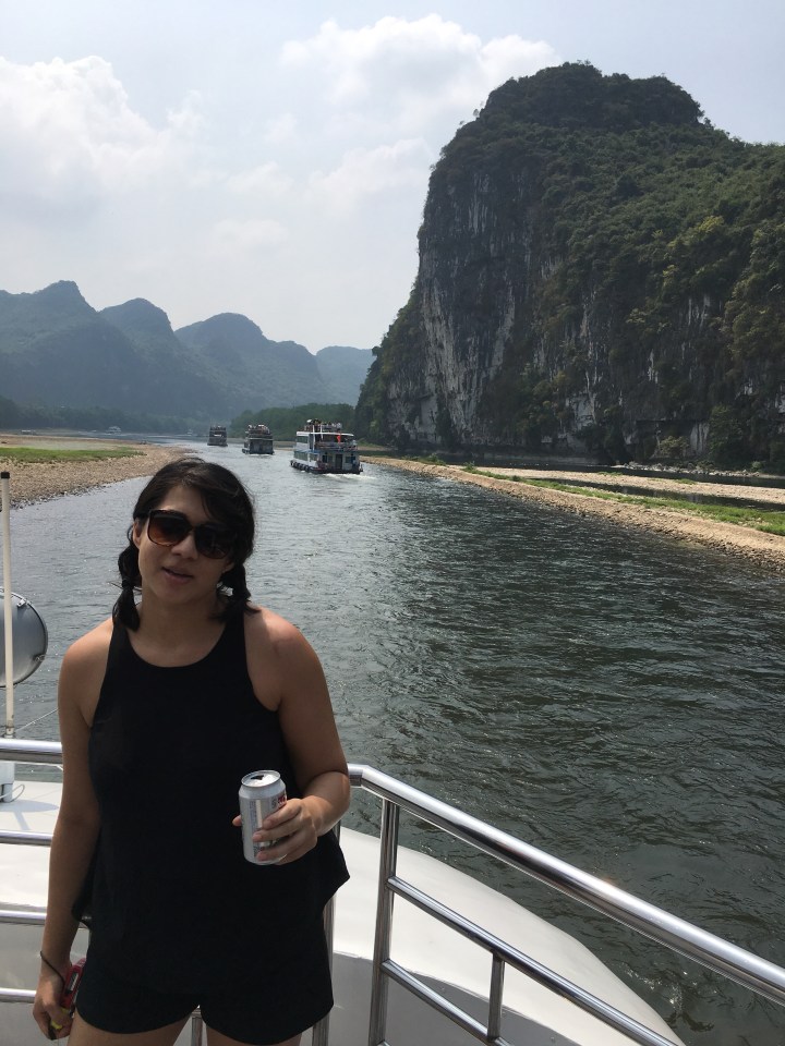 On Saturday morning, we woke up very early so that we could be on our way to the Guilin to Yangshuo river cruise. There were about 50 people on our cruise, and it took about 5 hours to from one end to the other. Boyfriend and I spent a majority of the 5 hour boat ride on the front deck watching the view, drinking cheap beer, and trying to understand the boat’s tour conductor was trying to describe (“in front of you is clearly a cup”). No…not its not.