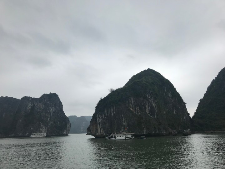 It was slightly drizzling and cold, so prospects of us being able to swim in the bay was little to none. We were bundled up in pants, a rain jacket, and an umbrella for our morning excursion. We climbed about 10 minuted straight up stairs to see a view of Halong Bay
