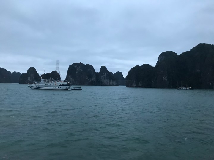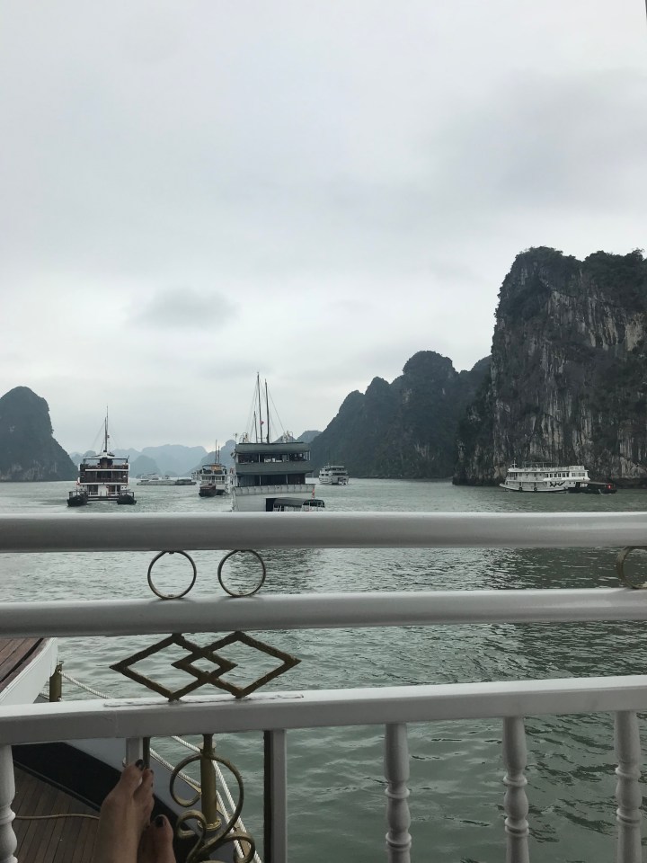 We got to the bus stop there and jumped into a taxi to the Halong Bay tourist marina. We got to our cruise line dock, where we reconnected with WiFi and enjoyed alcohol until our boarding time. Our bags were brought on and we got our boat.