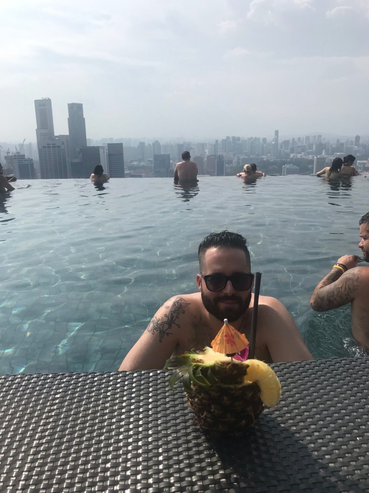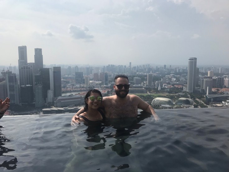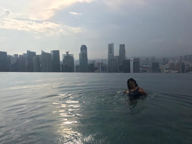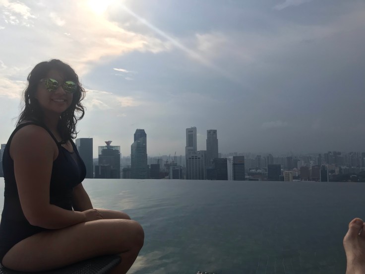 After checking in, we went to THE roof pool. SO SO SO SO SO COOL. The water was perfect, the view was so cool (i got to see the Merlion), an overall awesome experince