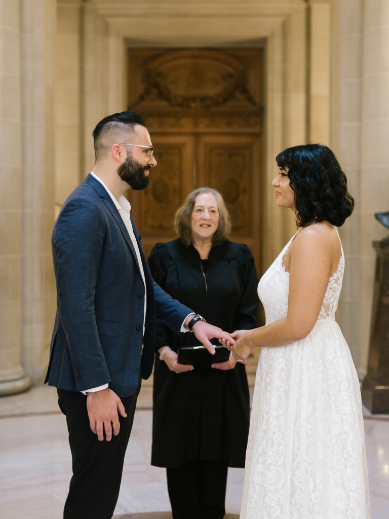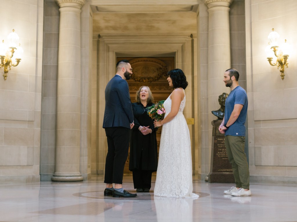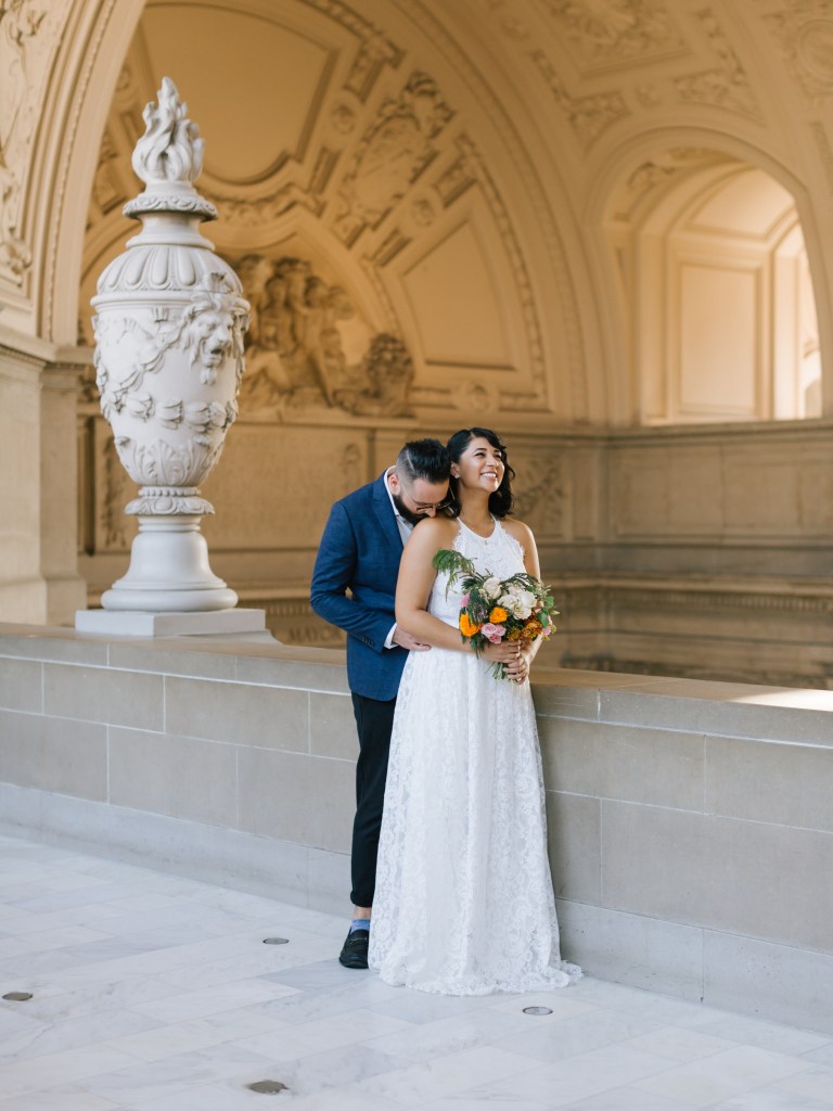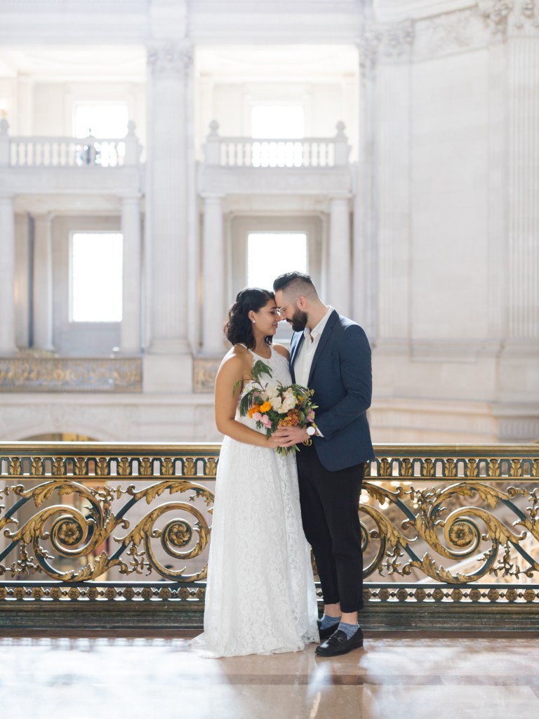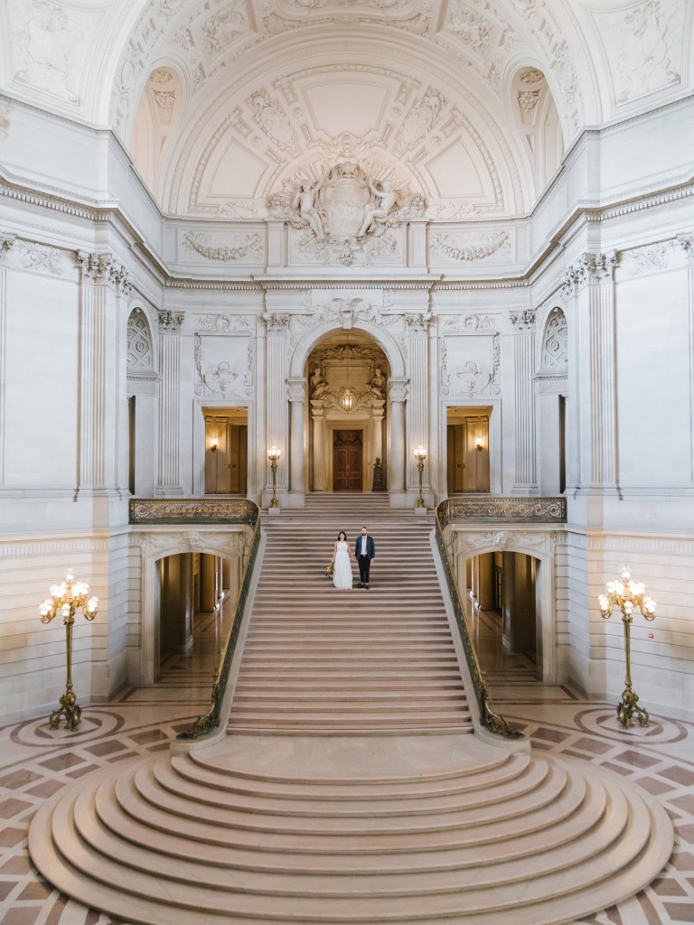 We then went to City Hall for our marriage certificate and wedding ceremony. We met with our friend who was our witness and with our photographer. And we got married at 10:30 am in SF City Hall, one of the best and beautiful places to get married at: